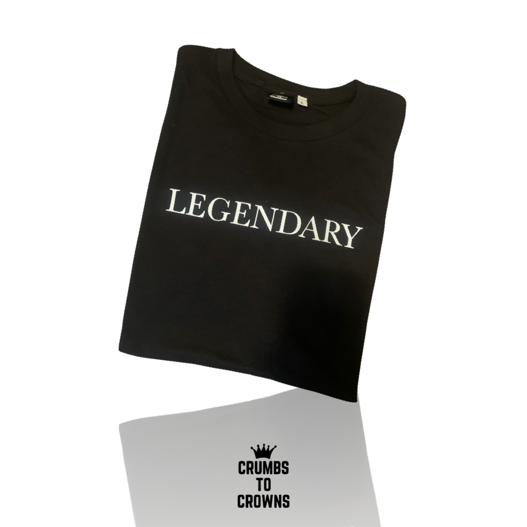 Legendary T-Shirt with graphic on front chest and classic Crumbs To Crowns logo on back collar. Goes great with many styles in Men's and Women's fashion.